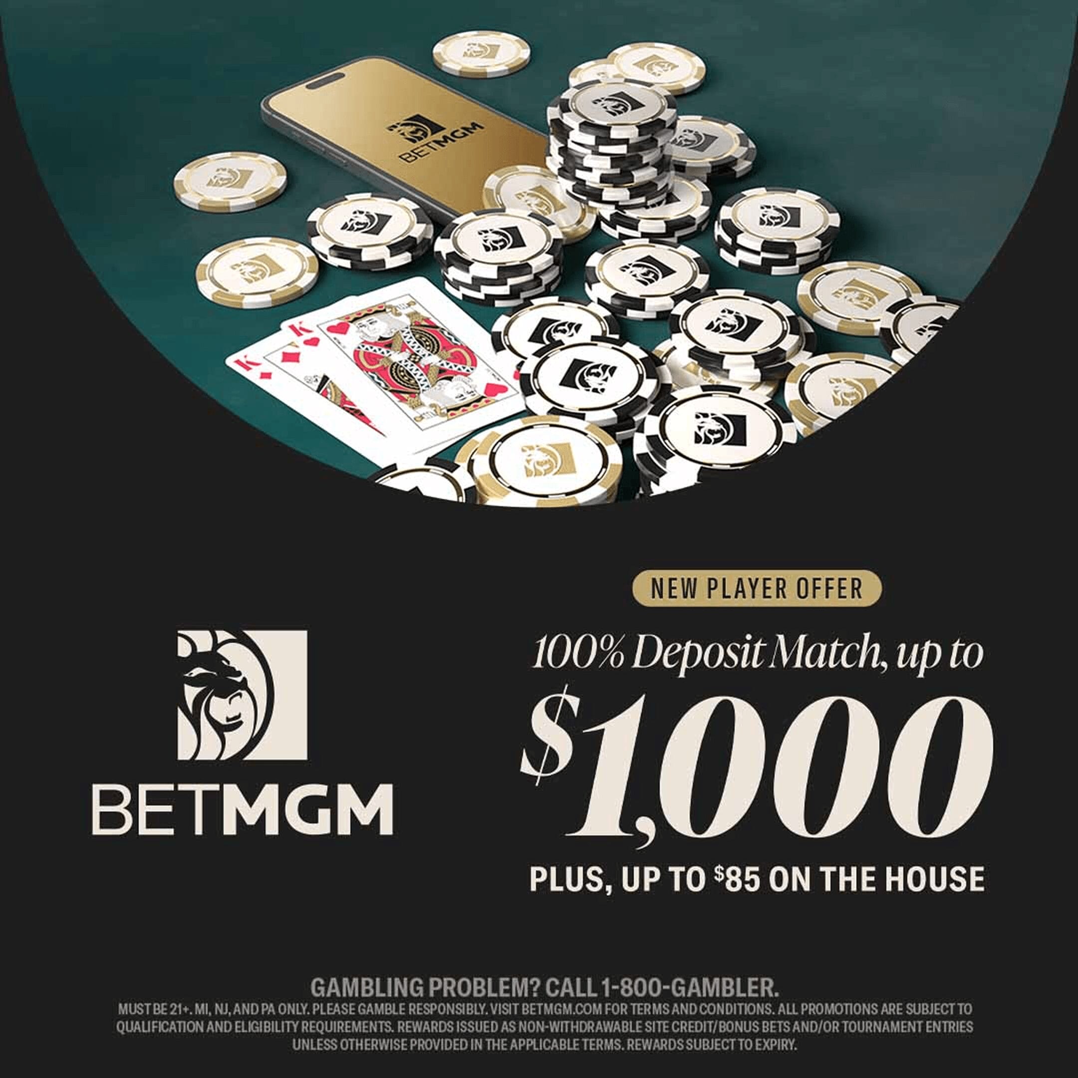 Gambling problem? Call 1-800-GAMBLER (Available in the US), 877-8-HOPENY or text HOPENY (467369) (NY)1-800-327-5050 (MA), 1-800-NEXT-STEP (AZ), 1-800-BETS-OFF (IA), 1-800-981-0023 (PR) 21+ only. Please Gamble Responsibly. See BetMGM.com for Terms. Subject to eligibility requirements. In partnership with Kansas Crossing Casino and Hotel.